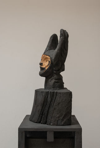 Carved wood with partial charring